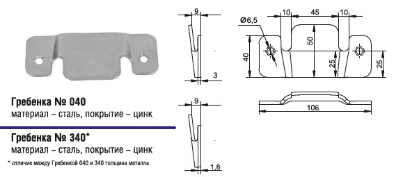 Материал - сталь, покрытие - цинк. Отличие между гребенками №040 и 340 в толщине металла.
